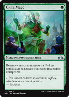 | Rules | Target creature gets +1/+1 until end of turn for each creature you control. |