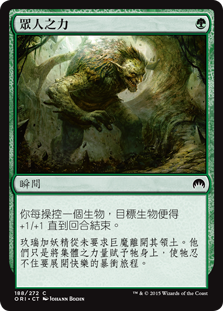 | Rules | Target creature gets +1/+1 until end of turn for each creature you control. |