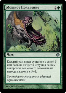 | Rules | Whenever a creature with power 5 or greater enters the battlefield under your control, you may put two +1/+1 counters on it. |