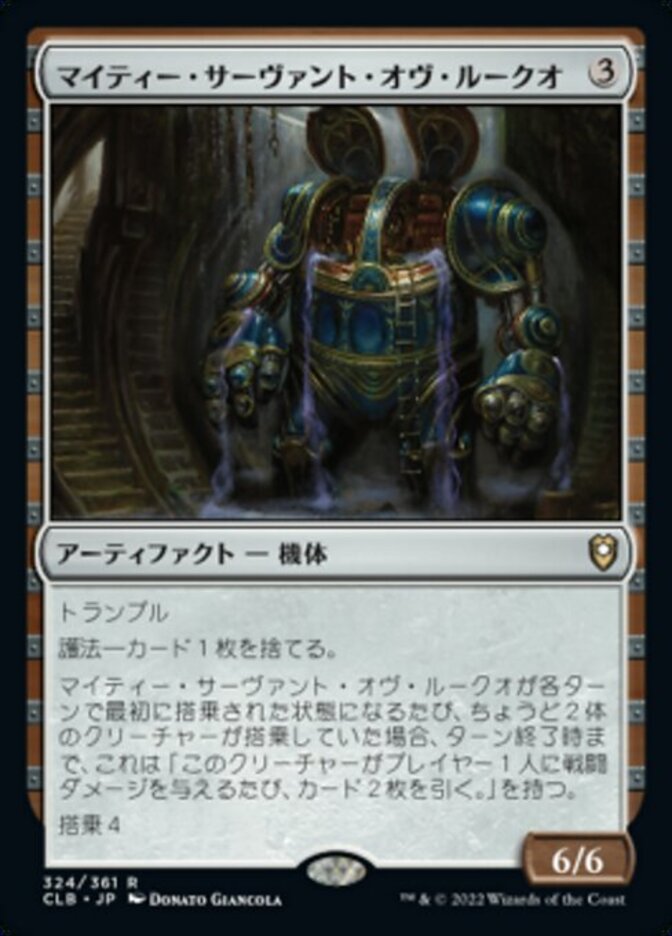 | Rules | Trample Ward—Discard a card. Whenever Mighty Servant of Leuk-o becomes crewed for the first time each turn, if it was crewed by exactly two creatures, it gains "Whenever this creature deals combat damage to a player, draw two cards" until end of turn. Crew 4 |