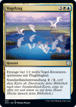 | Rules | Create four 1/1 white Bird creature tokens with flying. Basic landcycling (, Discard this card: Search your library for a basic land card, reveal it, put it into your hand, then shuffle.) |
