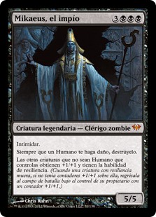 | Rules | Intimidate (This creature can't be blocked except by artifact creatures and/or creatures that share a color with it.) Whenever a Human deals damage to you, destroy it. Other non-Human creatures you control get +1/+1 and have undying. (When a creature with undying dies, if it had no +1/+1 counters on it, return it to the battlefield under its owner's control with a +1/+1 counter on it.) |