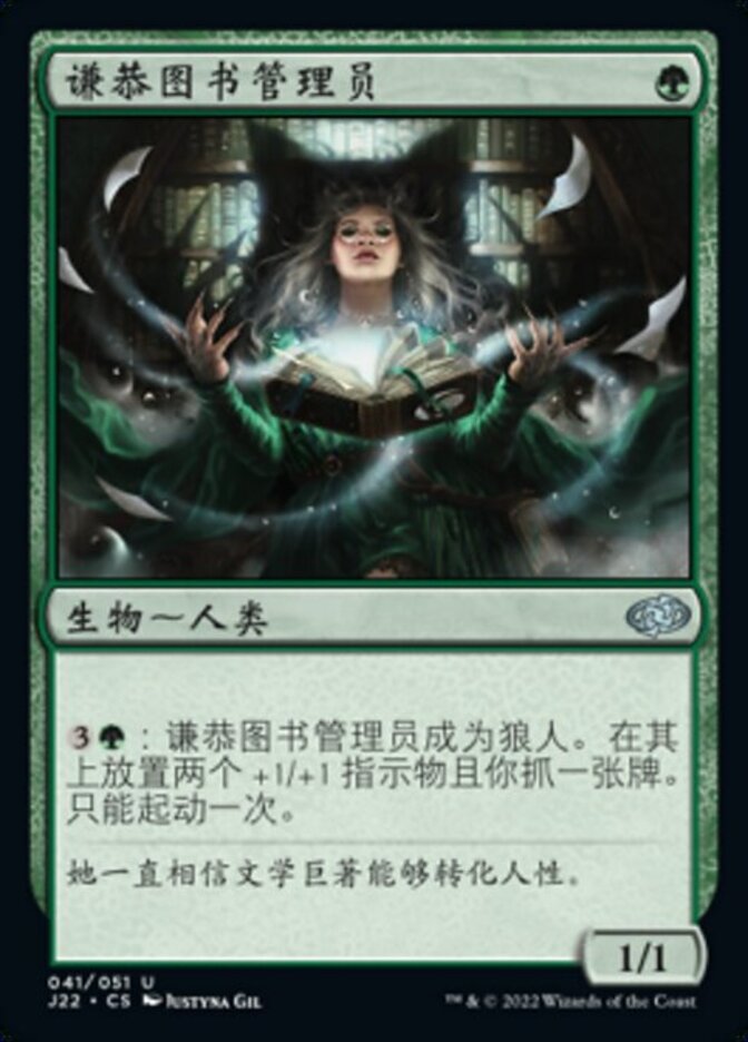 | Rules | : Mild-Mannered Librarian becomes a Werewolf. Put two +1/+1 counters on it and you draw a card. Activate only once. |