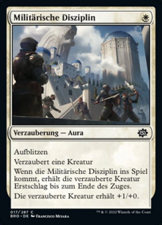| Rules | Flash Enchant creature When Military Discipline enters the battlefield, enchanted creature gains first strike until end of turn. Enchanted creature gets +1/+0. |