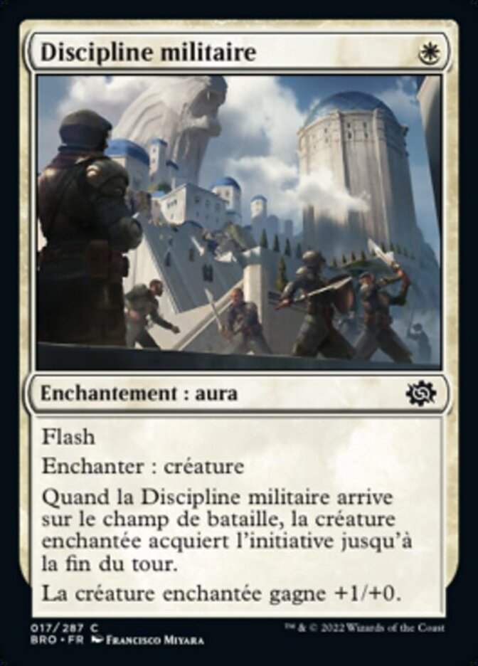 | Rules | Flash Enchant creature When Military Discipline enters the battlefield, enchanted creature gains first strike until end of turn. Enchanted creature gets +1/+0. |