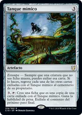 | Rules | Imprint — Whenever a nontoken creature dies, you may exile that card. If you do, return each other card exiled with Mimic Vat to its owner's graveyard. , : Create a token that's a copy of a card exiled with Mimic Vat. It gains haste. Exile it at the beginning of the next end step. |