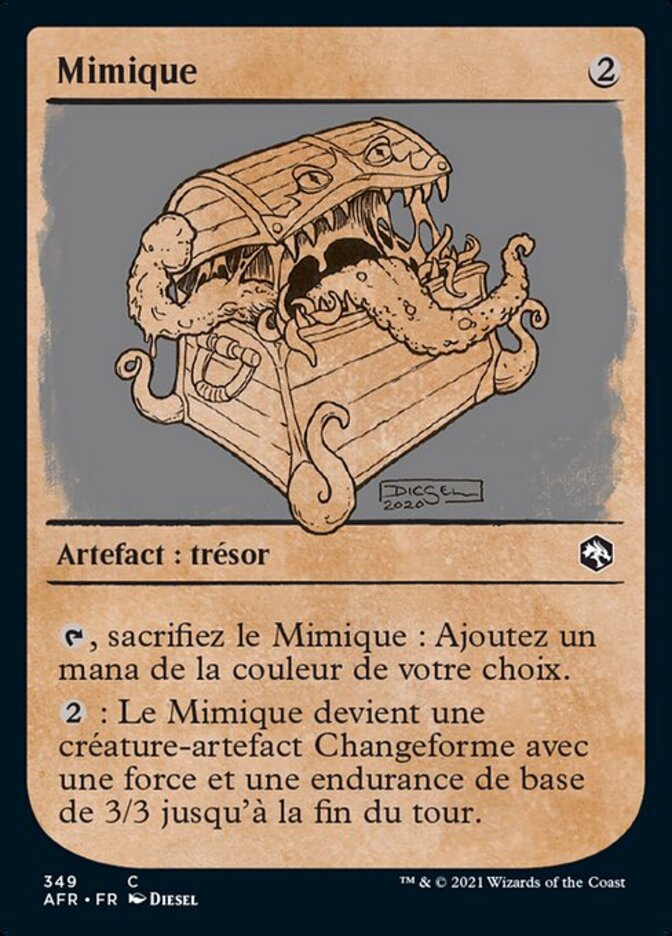 | Rules | , Sacrifice Mimic: Add one mana of any color. : Mimic becomes a Shapeshifter artifact creature with base power and toughness 3/3 until end of turn. |