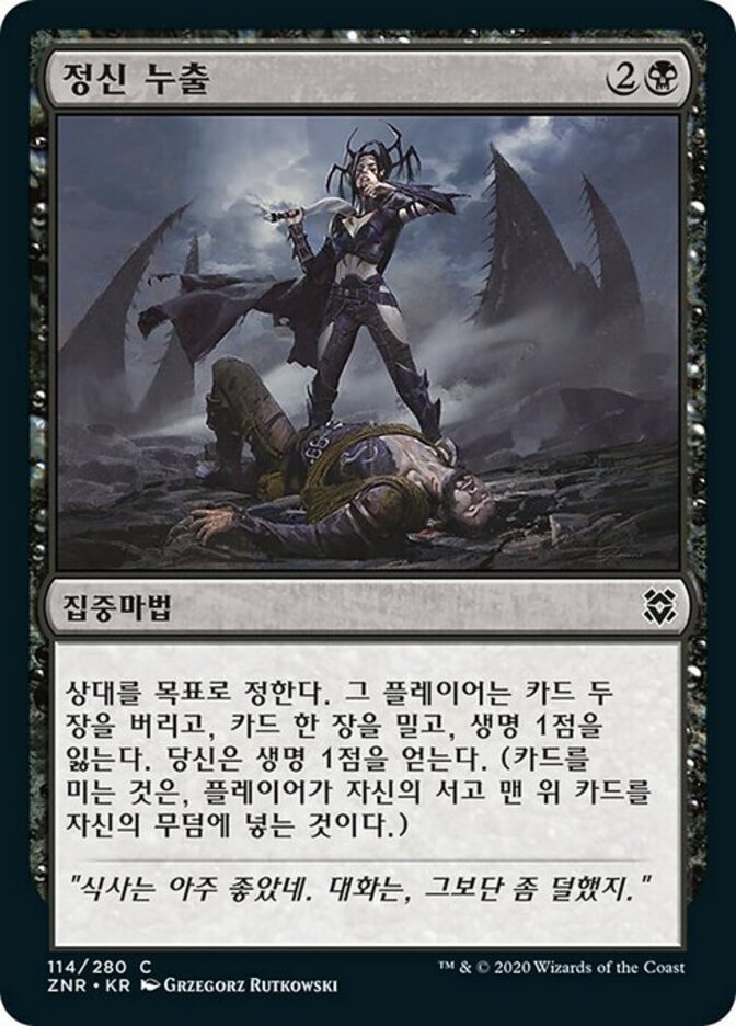 | Rules | Target opponent discards two cards, mills a card, and loses 1 life. You gain 1 life. (To mill a card, a player puts the top card of their library into their graveyard.) |