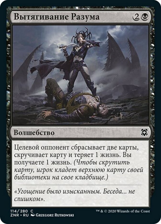 | Rules | Target opponent discards two cards, mills a card, and loses 1 life. You gain 1 life. (To mill a card, a player puts the top card of their library into their graveyard.) |