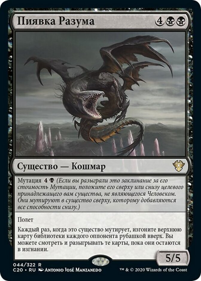 | Rules | Mutate (If you cast this spell for its mutate cost, put it over or under target non-Human creature you own. They mutate into the creature on top plus all abilities from under it.) Flying Whenever this creature mutates, exile the top card of each opponent's library face down. You may look at and play those cards for as long as they remain exiled. |