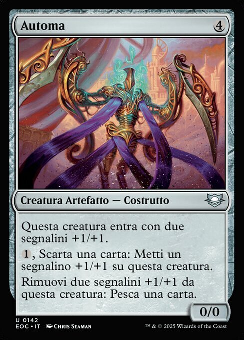 | Rules | Mindless Automaton enters the battlefield with two +1/+1 counters on it. , Discard a card: Put a +1/+1 counter on Mindless Automaton. Remove two +1/+1 counters from Mindless Automaton: Draw a card. |