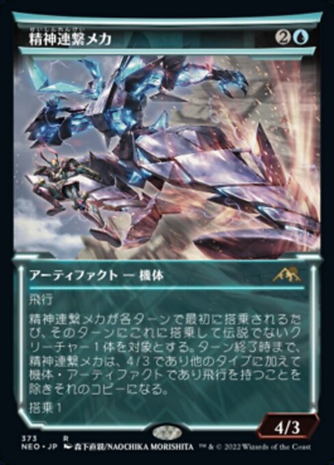 | Rules | Flying Whenever Mindlink Mech becomes crewed for the first time each turn, until end of turn, Mindlink Mech becomes a copy of target nonlegendary creature that crewed it this turn, except it's 4/3, it's a Vehicle artifact in addition to its other types, and it has flying. Crew 1 |