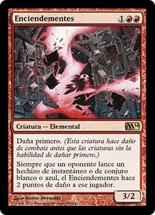 | Rules | First strike (This creature deals combat damage before creatures without first strike.) Whenever an opponent casts a white or blue instant or sorcery spell, Mindsparker deals 2 damage to that player. |