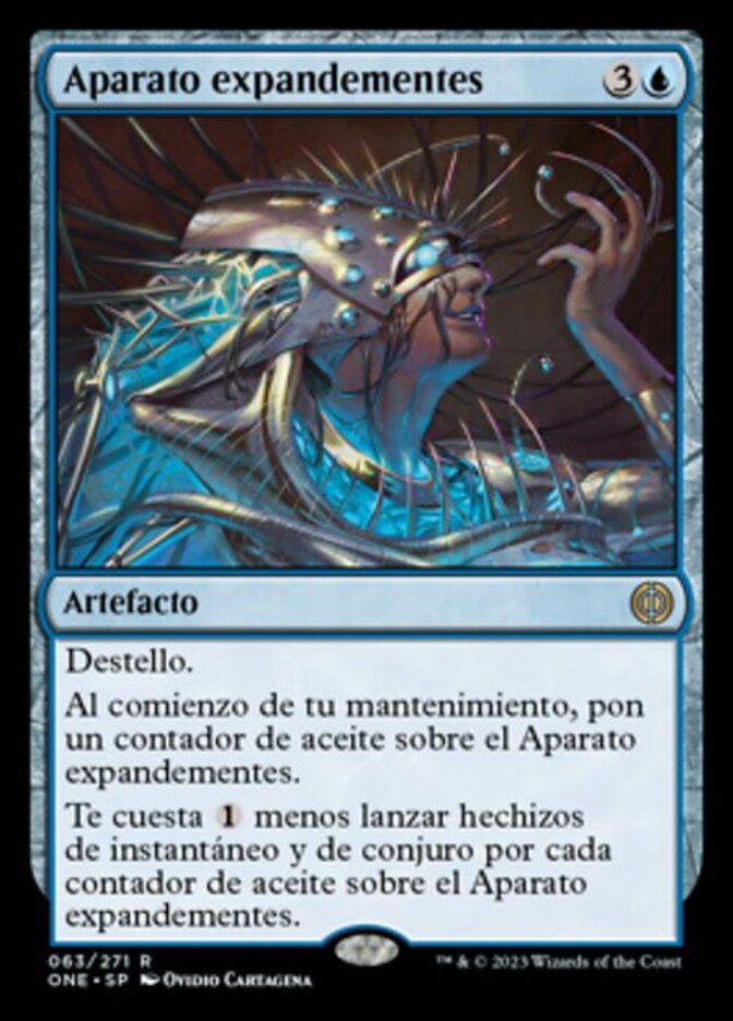 | Rules | Flash At the beginning of your upkeep, put an oil counter on Mindsplice Apparatus. Instant and sorcery spells you cast cost less to cast for each oil counter on Mindsplice Apparatus. |