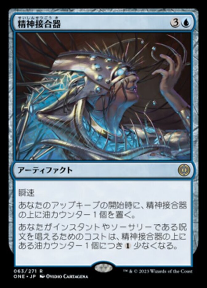 | Rules | Flash At the beginning of your upkeep, put an oil counter on Mindsplice Apparatus. Instant and sorcery spells you cast cost less to cast for each oil counter on Mindsplice Apparatus. |