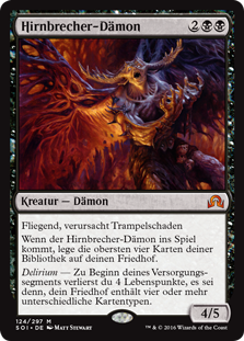 | Rules | Flying, trample When Mindwrack Demon enters the battlefield, mill four cards. Delirium — At the beginning of your upkeep, you lose 4 life unless there are four or more card types among cards in your graveyard. |