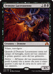 | Rules | Flying, trample When Mindwrack Demon enters the battlefield, mill four cards. Delirium — At the beginning of your upkeep, you lose 4 life unless there are four or more card types among cards in your graveyard. |