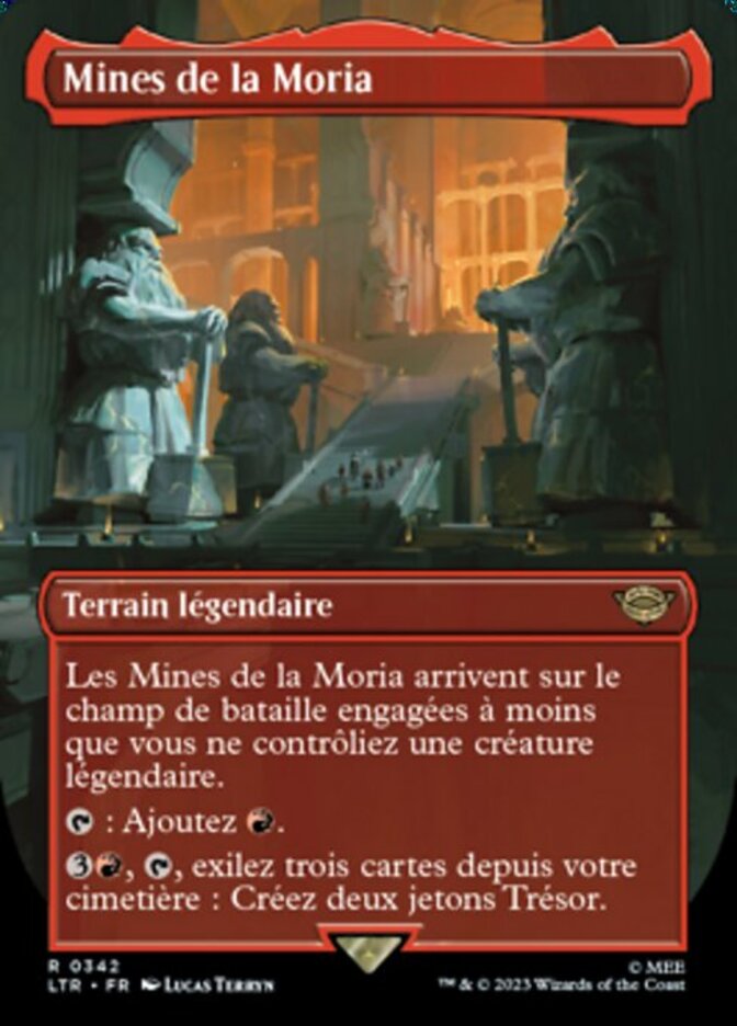 | Rules | Mines of Moria enters the battlefield tapped unless you control a legendary creature. : Add . , , Exile three cards from your graveyard: Create two Treasure tokens. |