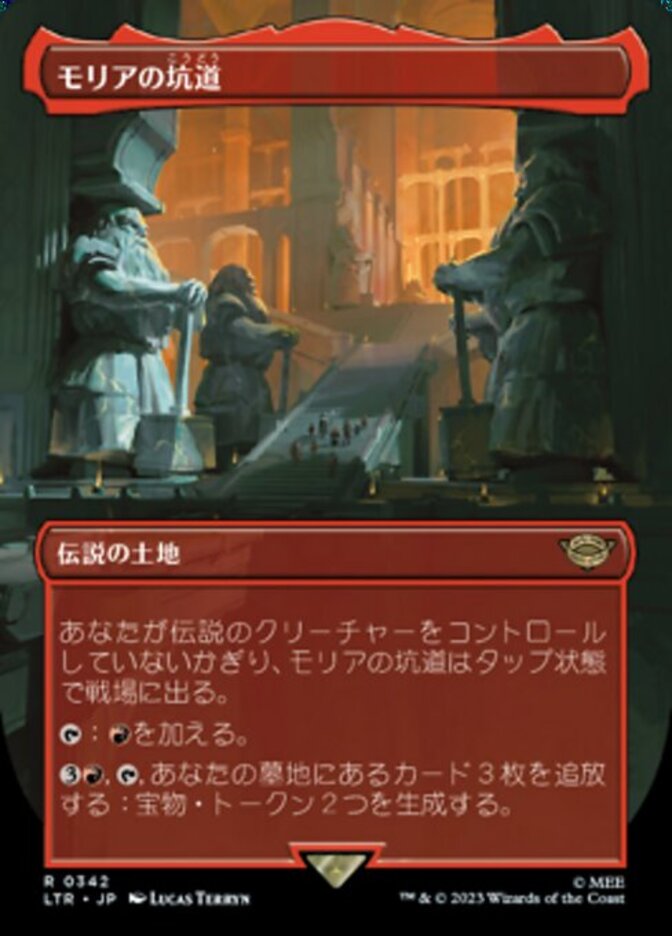 | Rules | Mines of Moria enters the battlefield tapped unless you control a legendary creature. : Add . , , Exile three cards from your graveyard: Create two Treasure tokens. |