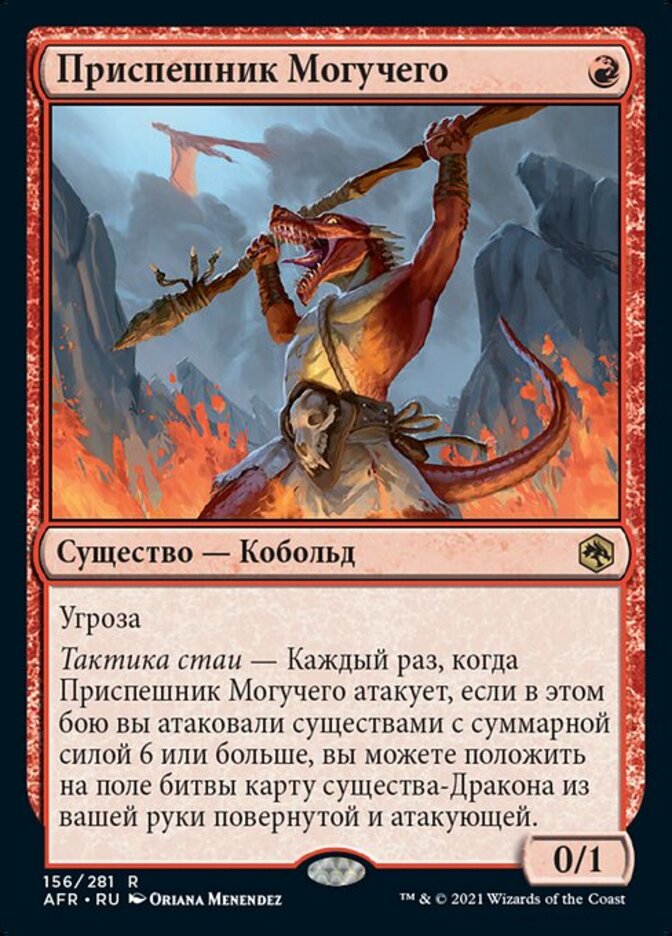 | Rules | Menace Pack tactics — Whenever Minion of the Mighty attacks, if you attacked with creatures with total power 6 or greater this combat, you may put a Dragon creature card from your hand onto the battlefield tapped and attacking. |