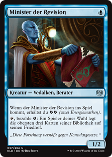 | Rules | When Minister of Inquiries enters the battlefield, you get (two energy counters). , Pay : Target player mills three cards. |