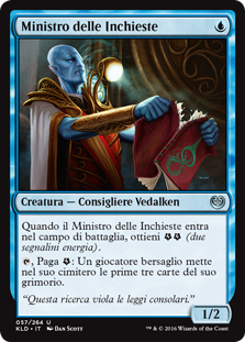 | Rules | When Minister of Inquiries enters the battlefield, you get (two energy counters). , Pay : Target player mills three cards. |