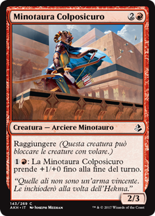 | Rules | Reach (This creature can block creatures with flying.) : Minotaur Sureshot gets +1/+0 until end of turn. |