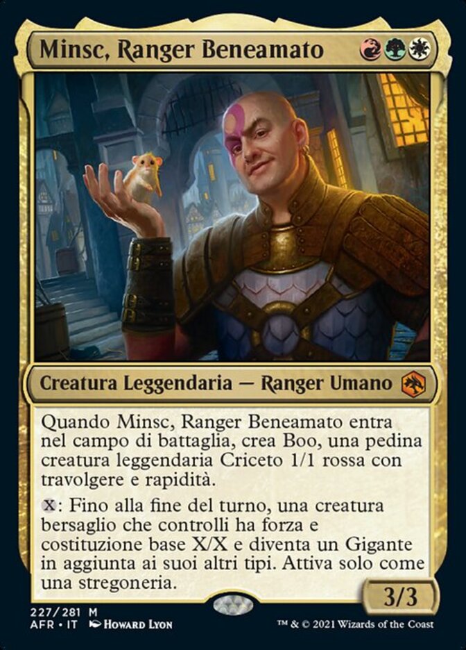 | Rules | When Minsc, Beloved Ranger enters the battlefield, create Boo, a legendary 1/1 red Hamster creature token with trample and haste. : Until end of turn, target creature you control has base power and toughness X/X and becomes a Giant in addition to its other types. Activate only as a sorcery. |