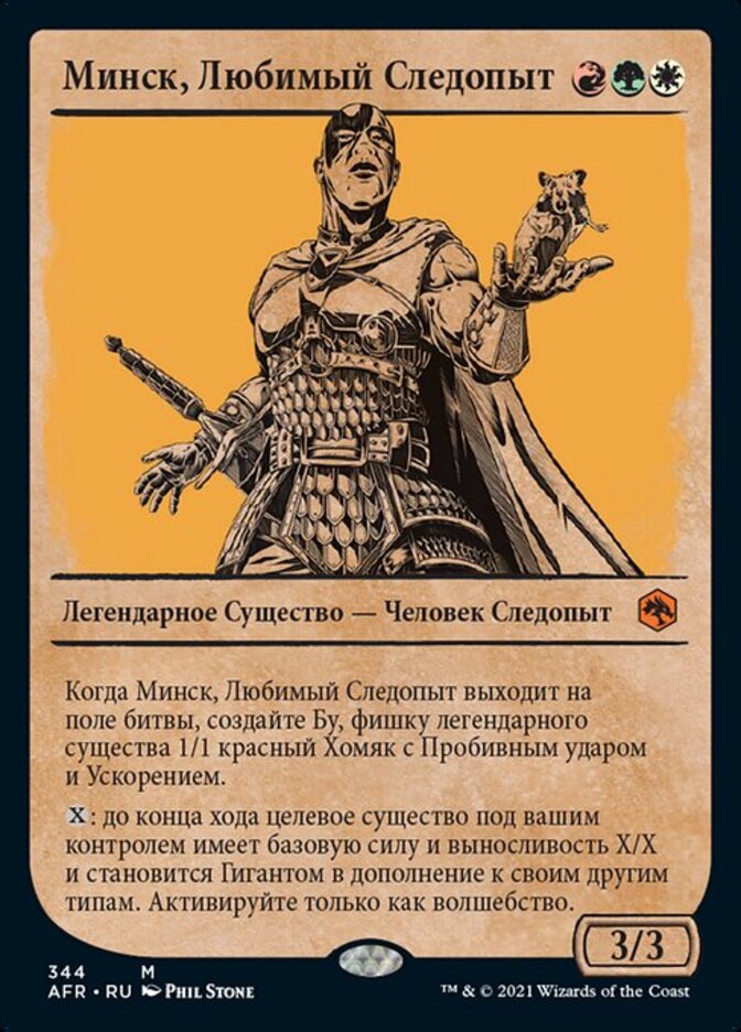 | Rules | When Minsc, Beloved Ranger enters the battlefield, create Boo, a legendary 1/1 red Hamster creature token with trample and haste. : Until end of turn, target creature you control has base power and toughness X/X and becomes a Giant in addition to its other types. Activate only as a sorcery. |