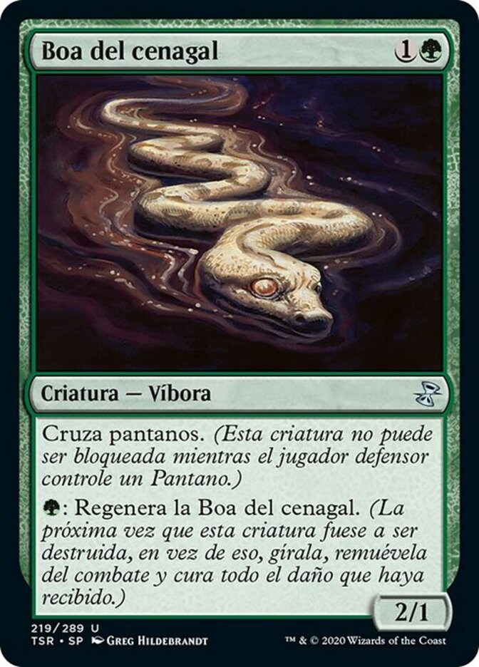 | Rules | Swampwalk (This creature can't be blocked as long as defending player controls a Swamp.) : Regenerate Mire Boa. (The next time this creature would be destroyed, instead tap it, remove it from combat, and heal all damage on it.) |