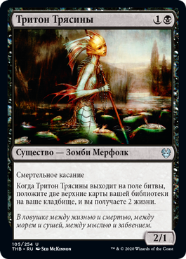 | Rules | Deathtouch When Mire Triton enters the battlefield, mill two cards and you gain 2 life. |