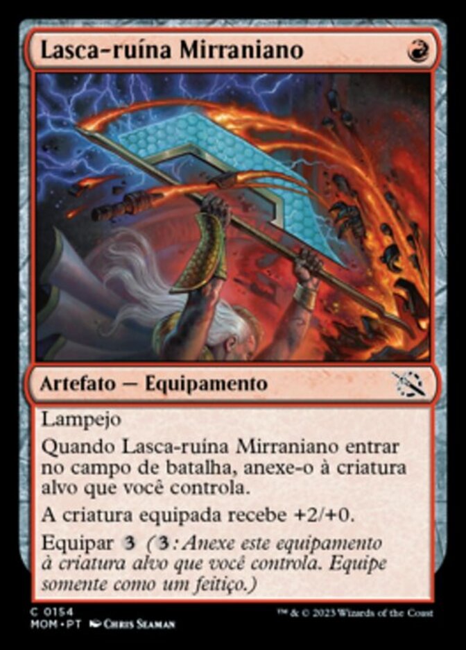 | Rules | Flash When Mirran Banesplitter enters the battlefield, attach it to target creature you control. Equipped creature gets +2/+0. Equip (: Attach to target creature you control. Equip only as a sorcery.) |