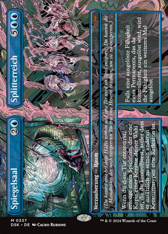 | Rules | (You may cast either half. That door unlocks on the battlefield. As a sorcery, you may pay the mana cost of a locked door to unlock it.) When you unlock this door, create a token that's a copy of target creature you control, except it's a Reflection in addition to its other creature types. // (You may cast either half. That door unlocks on the battlefield. As a sorcery, you may pay the mana cost of a locked door to unlock it.) If a triggered ability of a permanent you control triggers, that ability triggers an additional time. |