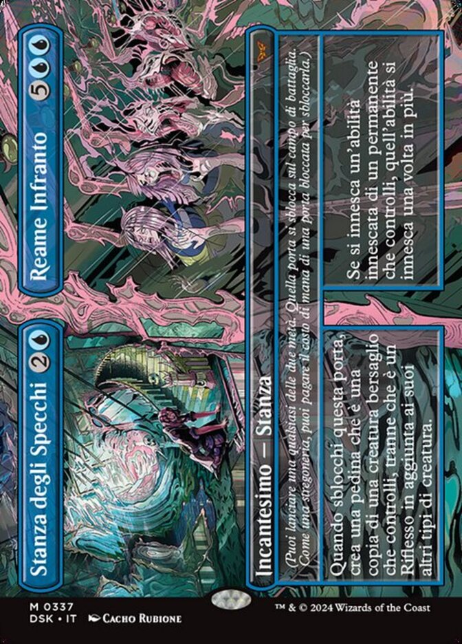 | Rules | (You may cast either half. That door unlocks on the battlefield. As a sorcery, you may pay the mana cost of a locked door to unlock it.) When you unlock this door, create a token that's a copy of target creature you control, except it's a Reflection in addition to its other creature types. // (You may cast either half. That door unlocks on the battlefield. As a sorcery, you may pay the mana cost of a locked door to unlock it.) If a triggered ability of a permanent you control triggers, that ability triggers an additional time. |