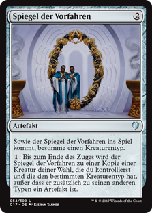 | Rules | As Mirror of the Forebears enters the battlefield, choose a creature type. : Until end of turn, Mirror of the Forebears becomes a copy of target creature you control of the chosen type, except it's an artifact in addition to its other types. |