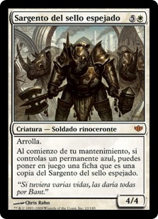 | Rules | Trample At the beginning of your upkeep, if you control a blue permanent, you may create a token that's a copy of Mirror-Sigil Sergeant. |