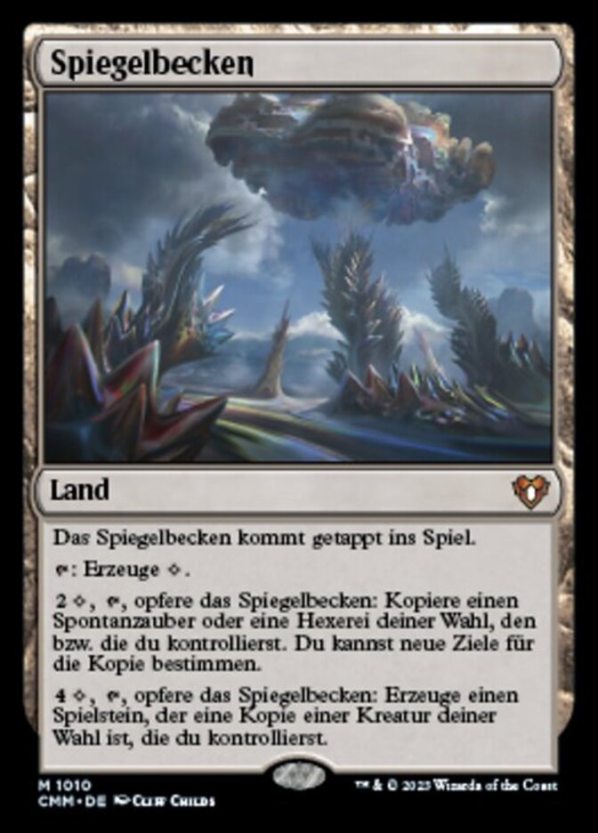 | Rules | Mirrorpool enters the battlefield tapped. : Add . , , Sacrifice Mirrorpool: Copy target instant or sorcery spell you control. You may choose new targets for the copy. , , Sacrifice Mirrorpool: Create a token that's a copy of target creature you control. |