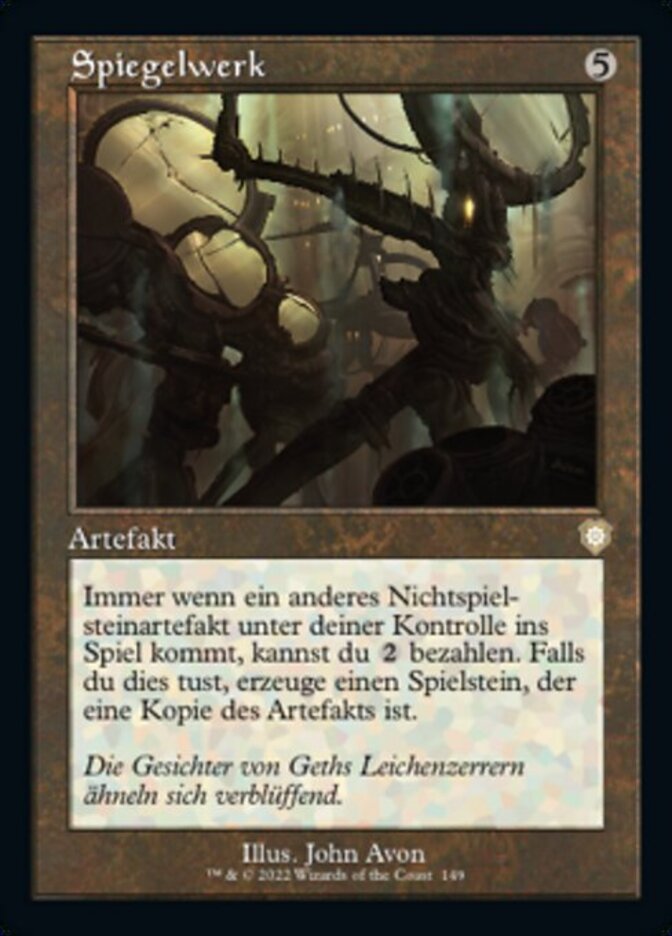 | Rules | Whenever another nontoken artifact enters the battlefield under your control, you may pay . If you do, create a token that's a copy of that artifact. |