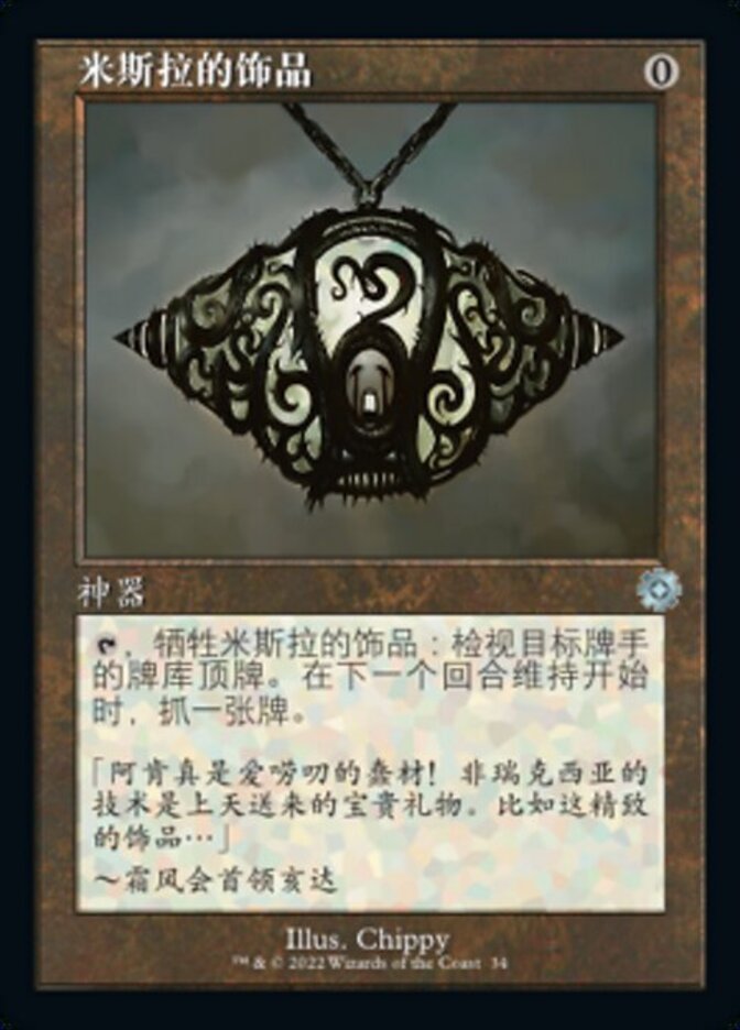 | Rules | , Sacrifice Mishra's Bauble: Look at the top card of target player's library. Draw a card at the beginning of the next turn's upkeep. |