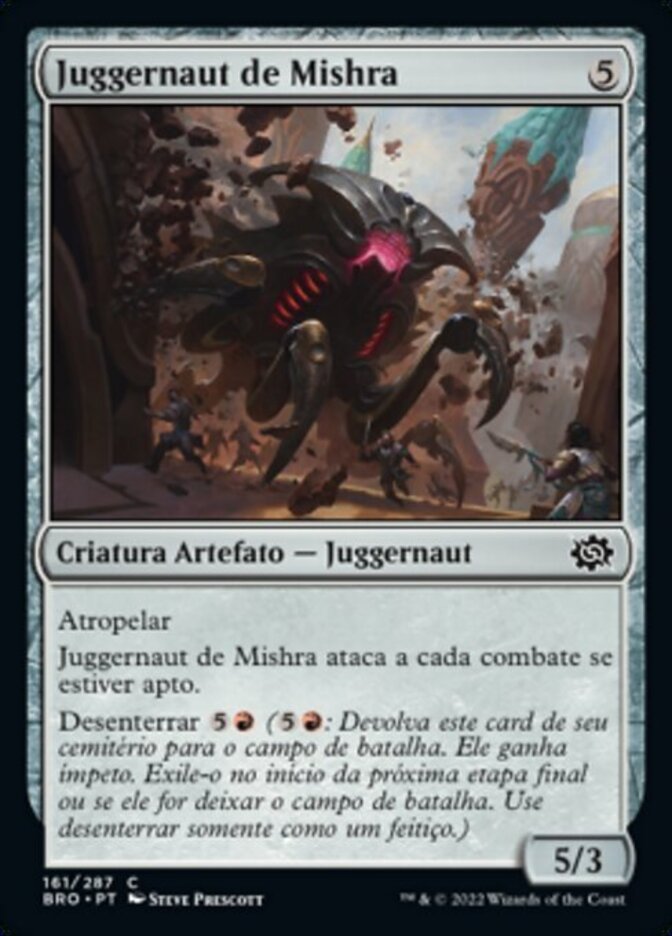 | Rules | Trample Mishra's Juggernaut attacks each combat if able. Unearth (: Return this card from your graveyard to the battlefield. It gains haste. Exile it at the beginning of the next end step or if it would leave the battlefield. Unearth only as a sorcery.) |