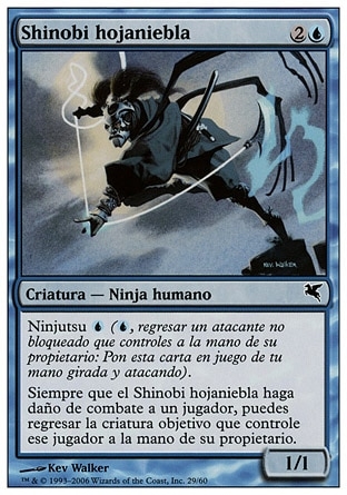 | Rules | Ninjutsu (, Return an unblocked attacker you control to hand: Put this card onto the battlefield from your hand tapped and attacking.) Whenever Mistblade Shinobi deals combat damage to a player, you may return target creature that player controls to its owner's hand. |