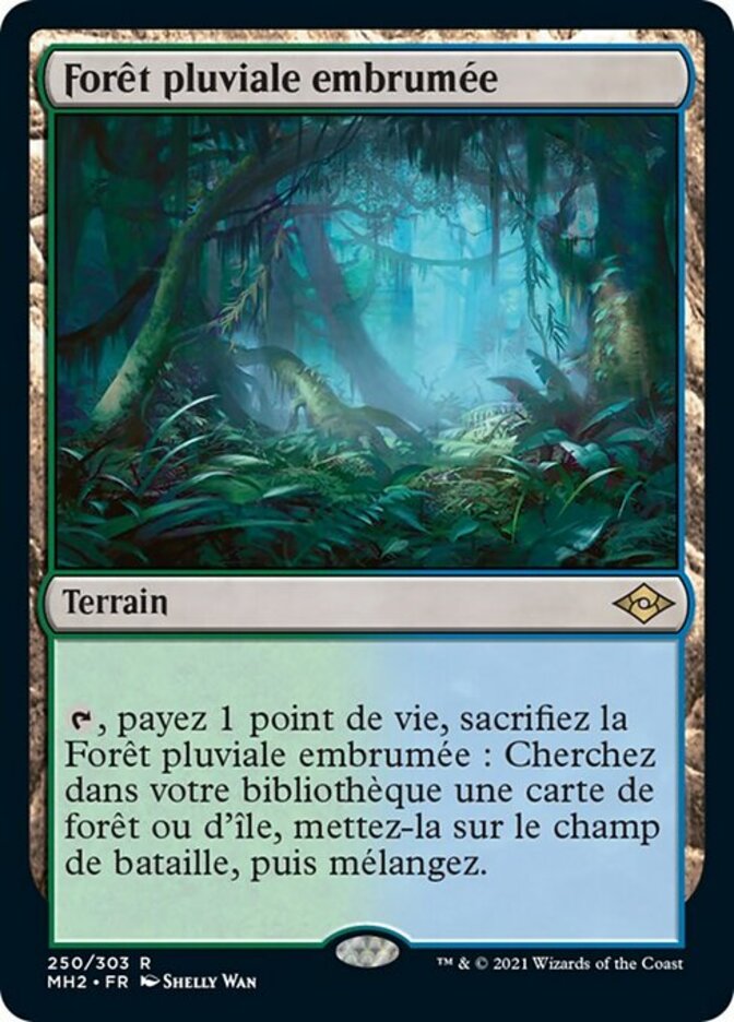 | Rules | , Pay 1 life, Sacrifice Misty Rainforest: Search your library for a Forest or Island card, put it onto the battlefield, then shuffle. |