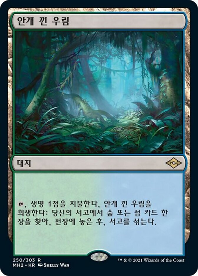 | Rules | , Pay 1 life, Sacrifice Misty Rainforest: Search your library for a Forest or Island card, put it onto the battlefield, then shuffle. |