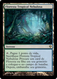 Rules , Pay 1 life, Sacrifice Misty Rainforest: Search your library for a Forest or Island card, put it onto the battlefield, then shuffle.