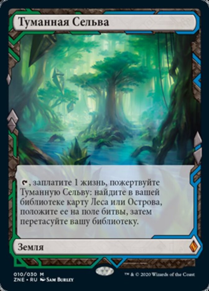 | Rules | , Pay 1 life, Sacrifice Misty Rainforest: Search your library for a Forest or Island card, put it onto the battlefield, then shuffle. |