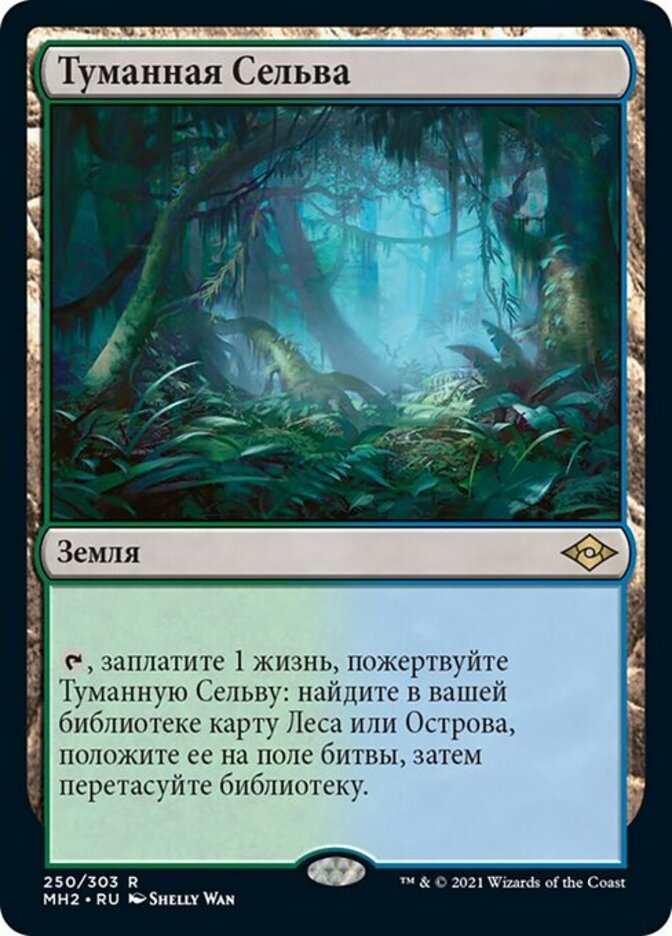 | Rules | , Pay 1 life, Sacrifice Misty Rainforest: Search your library for a Forest or Island card, put it onto the battlefield, then shuffle. |