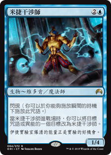 | Rules | Flash (You may cast this spell any time you could cast an instant.) When Mizzium Meddler enters the battlefield, you may change a target of target spell or ability to Mizzium Meddler. |