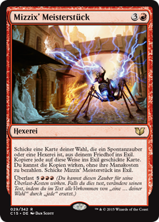 | Rules | Exile target card that's an instant or sorcery from your graveyard. For each card exiled this way, copy it, and you may cast the copy without paying its mana cost. Exile Mizzix's Mastery. Overload (You may cast this spell for its overload cost. If you do, change its text by replacing all instances of "target" with "each.") |