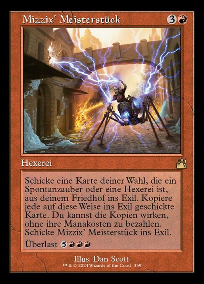 | Rules | Exile target card that's an instant or sorcery from your graveyard. For each card exiled this way, copy it, and you may cast the copy without paying its mana cost. Exile Mizzix's Mastery. Overload (You may cast this spell for its overload cost. If you do, change its text by replacing all instances of "target" with "each.") |