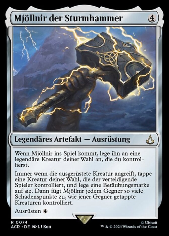 | Rules | When Mjölnir enters the battlefield, attach it to target legendary creature you control. Whenever equipped creature attacks, tap target creature defending player controls and put a stun counter on it. Then Mjölnir deals damage to each opponent equal to the number of tapped creatures that opponent controls. Equip |